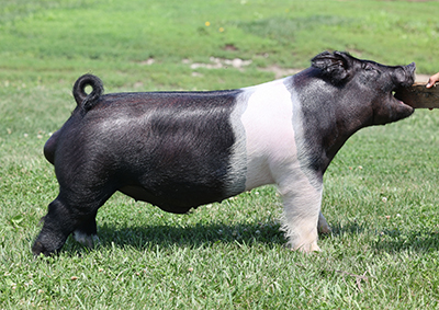 Bone, Bone, and more bone. This guy is super stout from nose to tail and everywhere in between. He is super stout skulled, huge legged, wide backed, and has a big square hip. With as much stoutness as he possesses, he is super athletic in his movement. Combine all of these traits with this potent pedigree you can’t go wrong. If you have a bunch of sows that need the added power this is the one for you.