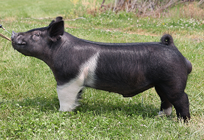 This is one unique creature in terms of power, bone, substance, and overall mass. This thing has a huge back and barrow proportions. For as much natural muscle and shape that this guy has, he moves like a cat. He reaches and flexes with ease and is up on his pasterns. Use this boar and enjoy the HAPPY TIMES when your pigs are at the backdrop. The Dam is a very special sow at the Schulte Show Pigs, she combines 11 years of their very best. Additionally, the grandmother won 1019 Iowa State Fair 4-H.