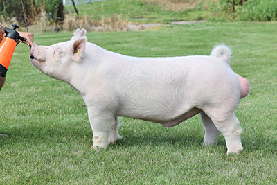 ICE BOX is can’t miss boar we purchased at 2025 STC. The judges today are always talking about checking all the boxes, ICE BOX checks every single one! You can study this boar all day long and you won’t find a weakness anywhere. This upheaded boar has tremendous bone, perfect feet & legs, thickness from front to rear, and muscle pattern we all like to see. If you could take barrows or breeding gilts to a show that look like ICE BOX, you know the opportunity is there to bring home the banners.